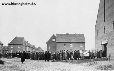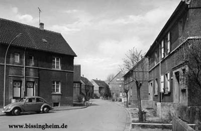 Berglehne in Bissingheim um 1950, links vor den Häusern beginnt der Teichgraben.